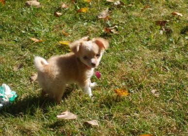Becky and Don, Than you so much for such a wonderful pup, Mack. He can be so laid back and relaxing on my lap and also playful when we play with him. He's also very smart and is picking up commands easily. So far he's pretty good at sit and stay. Everyone that meets him loves him and asks where we got him! He is also growing quite well! He went from 3lbs 11oz to 4lbs 5oz in about three weeks! So.....thanks again for providing us with a really great dog!! Abby Abby Delmar, New York Mack was adopted by Abby on July 23,2011 Abby and family now have Mack, Moutz, Minny and Chance |