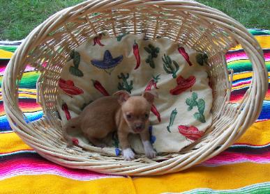 | Becky and Don, Thank you so much for such a wonderful pup. We just returned from our first four day trip out of state to Amish Country, PA. We stayed at a pet friendly motel and Buddy was an angel. He rode well, did his business well, and was just a joy to have with us, and he is just so cute. Buddy has added true joy and pleasure. Thank you for breeding Chihuahuas! Sincerely, Laurie and Gene Laurie and Gene, Waterville, New York Buddy was adopted by Laurie and Gene on May 15, 2010 |